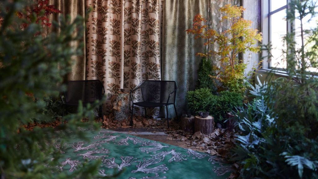 Seed rug and textiles by Miranda Brown at Auckland Design Week immersive biophilic spaces exhibition in 2025. Photography by Luke Foley-Martin