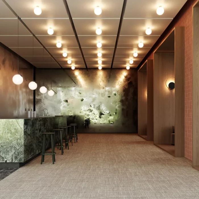 The Artcore Collection has one foundation tile design that shifts to 3 sister designs, through a transition tile unique to each pattern. Based on the principles of biophilia and wellness, this Carbon Neutral commercial flooring is made from 100% recycled yarn, in tufted loop pile. All four designs come in 16 colourways with 50cm x 50cm tiles as standard.